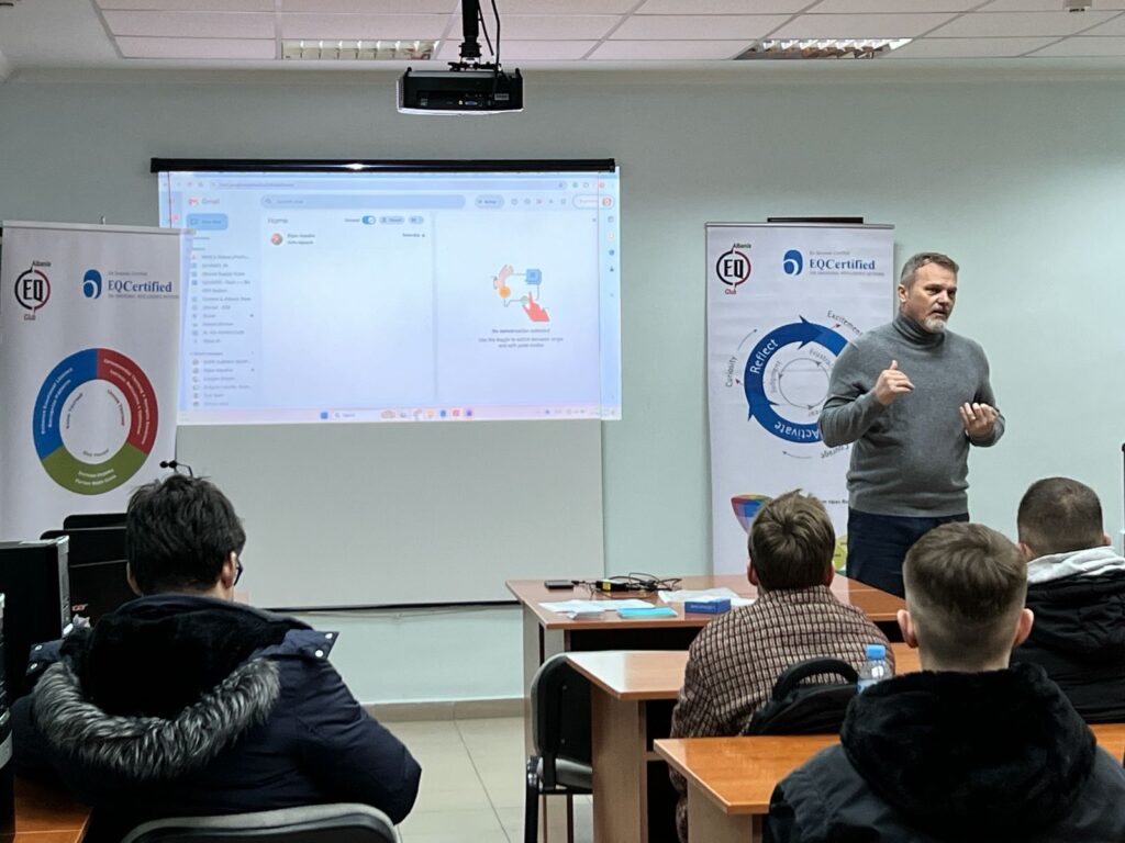 Trajnimi u drejtua nga z. Abdullah Veliu, trajner i certifikuar për Inteligjencën Emocionale, i cili prezantoi koncepte dhe teknika praktike mbi njohjen e vetvetes, menaxhimin e emocioneve dhe përmirësimin e aftësive ndërpersonale. Përmes një qasjeje interaktive dhe reflektuese, ky aktivitet krijoi një hapësirë të përshtatshme për diskutim, motivim dhe shkëmbim përvojash, duke kontribuar në fuqizimin e kapaciteteve individuale dhe në nxitjen e zhvillimit të vazhdueshëm personal.