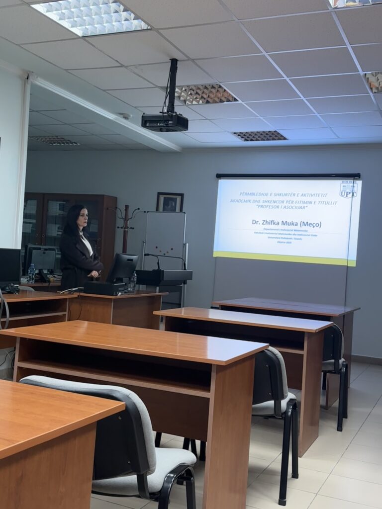 Fakulteti i Inxhinierisë Matematike dhe Inxhinierisë Fizike (FIMIF) njofton se më datën 4 Dhjetor 2025, në ambientet e Bibliotekes se FIMIF, u zhvillua me sukses referimi akademik në kuadër të promovimit të titullit akademik Profesor i Asociuar të Dr. Zhifka Muka(Meço), personel akademik në Departamentin e Inxhinierisë Matematike.