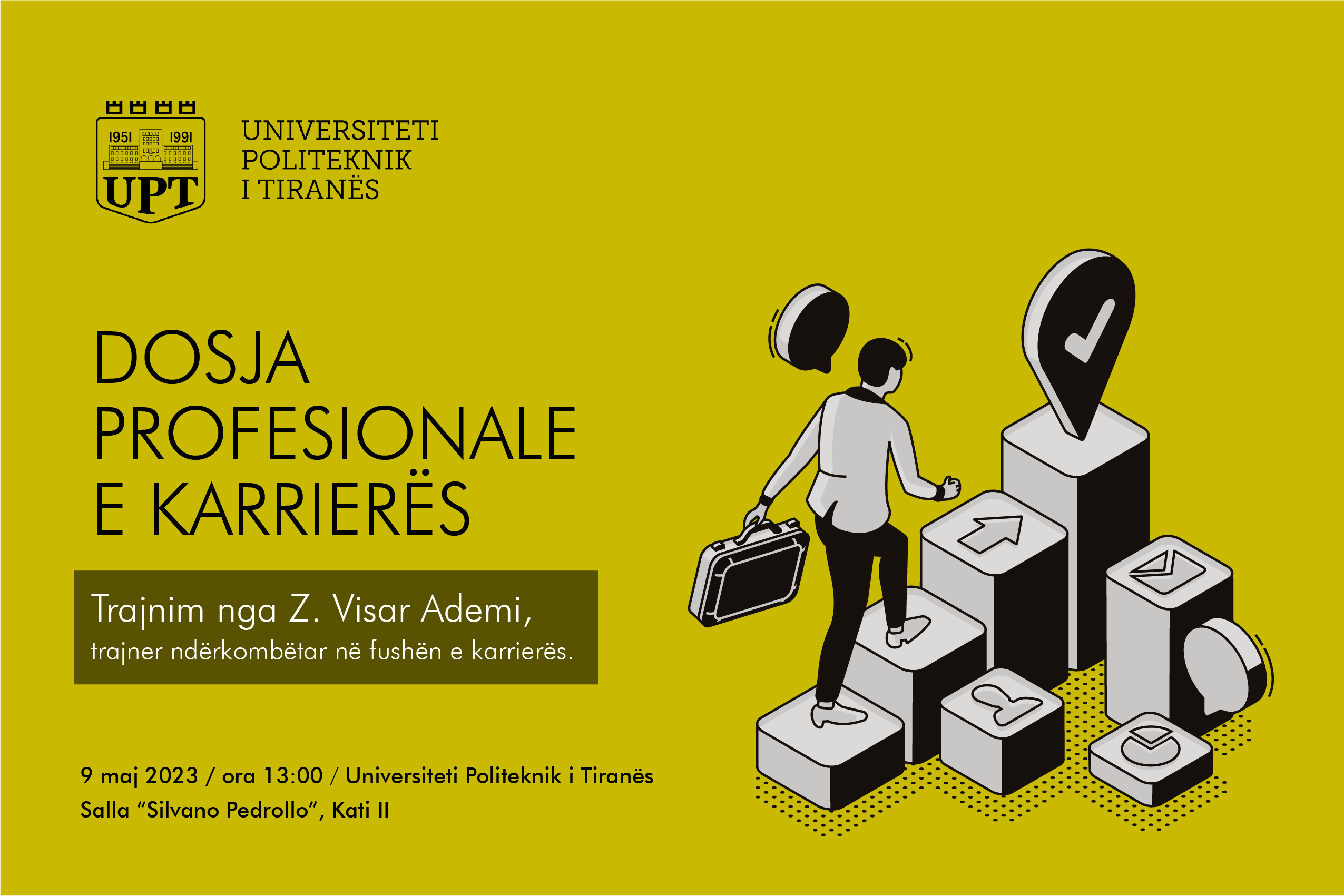 Në kuadër të aktiviteteve të zyrës së karrierës në datën 09 maj, ora 13.00 në ambientet e Rektoratit, në sallën “Silvano Pedrollo” për studentët e Universitetit Politeknik të Tiranës zhvillohet trajnimi me temë: