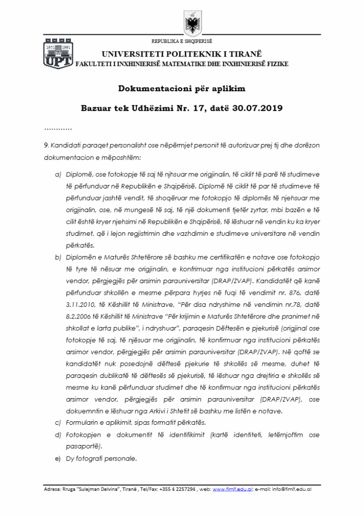 Fakulteti i Inxhinierisë Matematike dhe Inxhinierisë Fizike (FIMIF) njofton se më datën 26 Shtator 2025, në