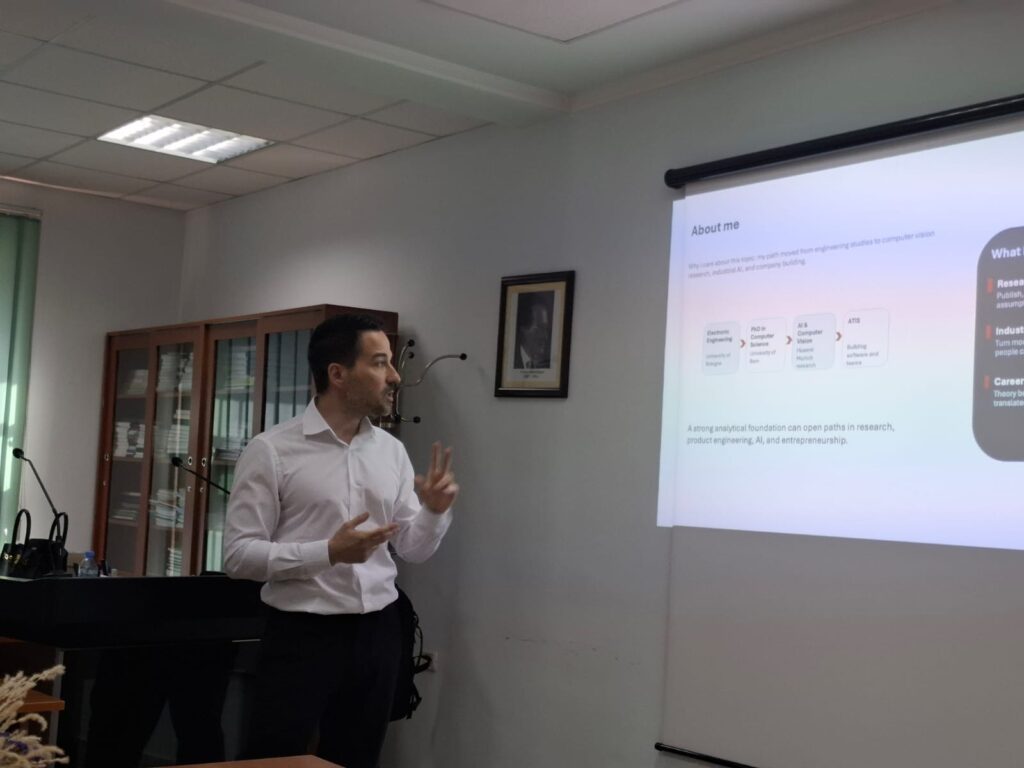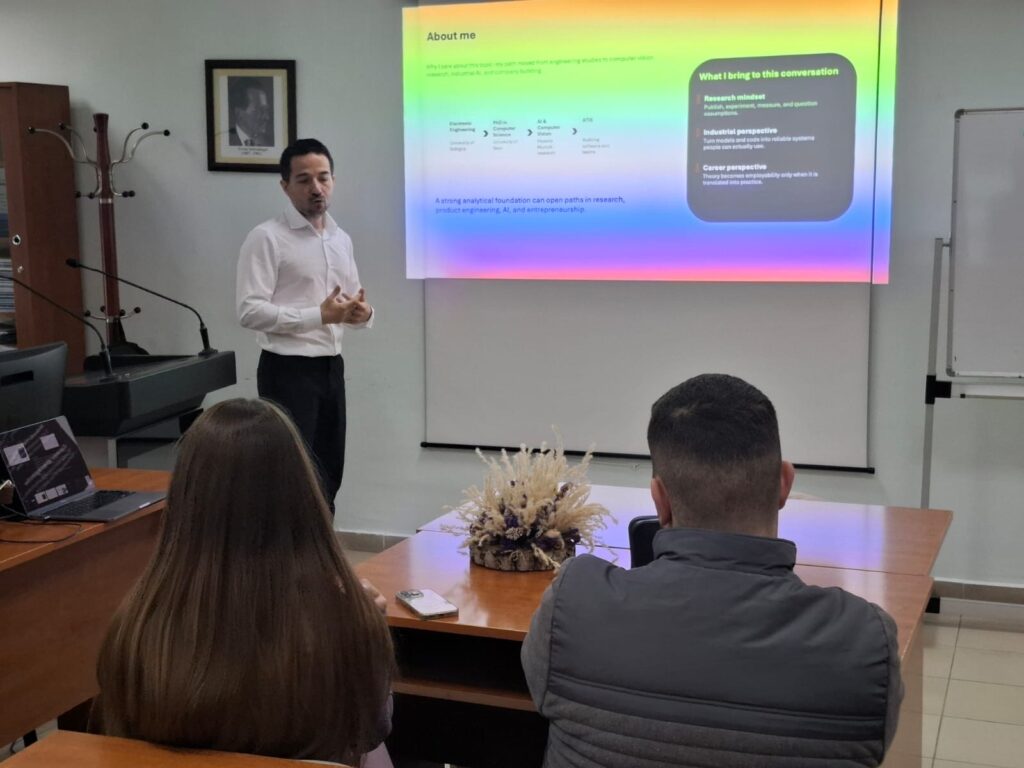 I ftuari special i këtij aktiviteti ishte z. Thoma Papadhimitri, administrator dhe themelues i kompanisë ATIS, i cili zhvilloi një bashkëbisedim të hapur me studentët dhe stafin akademik. Gjatë fjalës së tij, ai ndau përvojën profesionale dhe vuri në dukje rolin thelbësor të mendimit inxhinierik në zhvillimin e software-it dhe të Inteligjencës Artificiale.