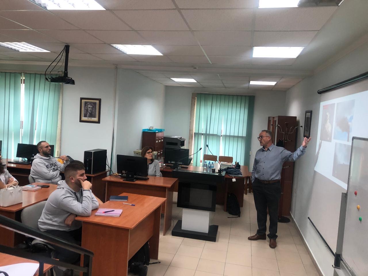 Leksion nga Prof. Dhimiter Bello, zhvilluar më 30 Tetor 2024 në FIMIF-UPT me studentë të Inxhinierisë Kimike dhe të Inxhinierisë së Mjedisit, mbi kiminë, toksikologjinë dhe epidemiologjinë e ndotjes së ajrit dhe nanogrimcave.