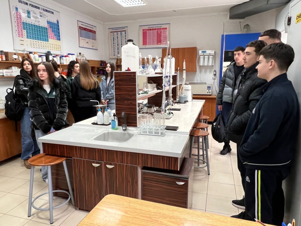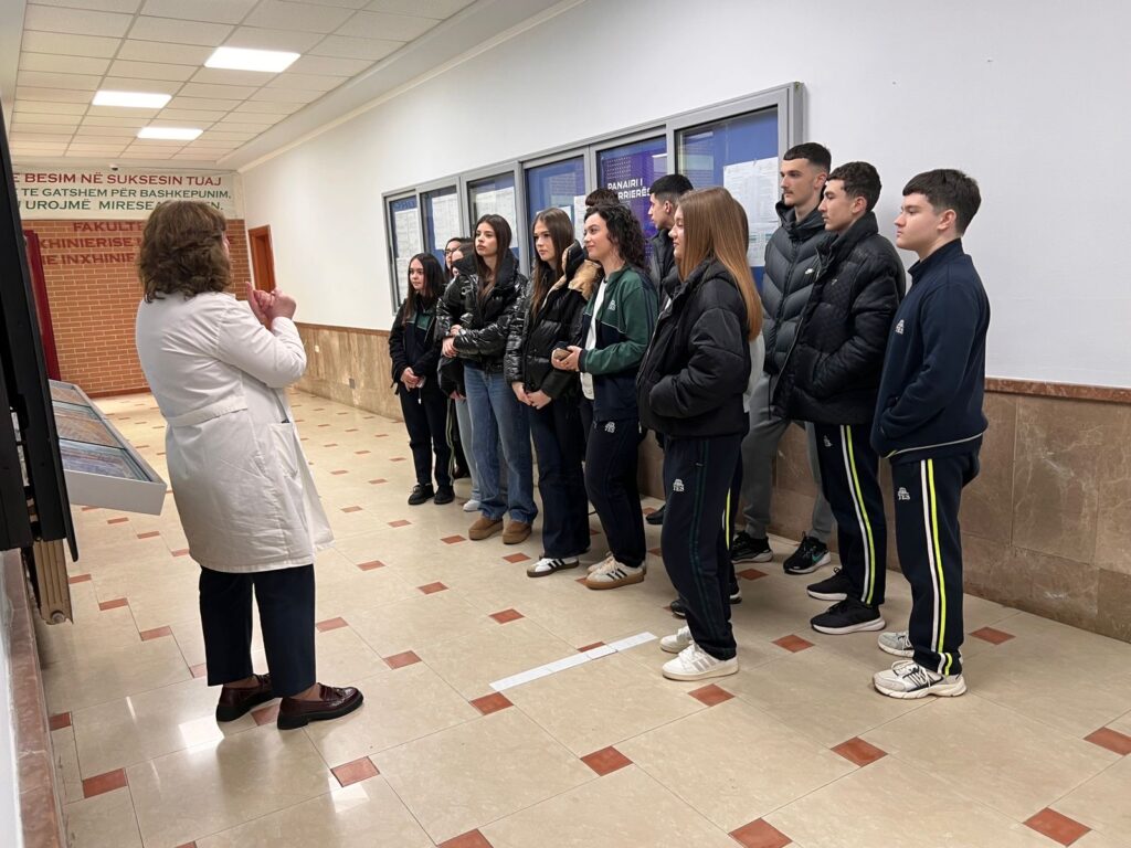 Gjatë kësaj vizite, nxënësit u njohën nga afër me ambientet e fakultetit, programet e studimit dhe infrastrukturën akademike. Një vëmendje e veçantë iu kushtua zhvillimit të aktiviteteve praktike në laboratorët e Fizikës dhe Kimisë, ku nxënësit patën mundësinë të ndjekin dhe të realizojnë eksperimente nën udhëzimin e stafit akademik.